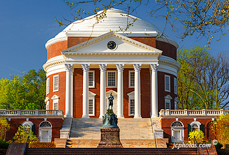 Jack Cacciatore photos highlight the beauty of the University of Virginia and surrounding area. These photographs accentuate the architectural accomplishments of Thomas Jefferson and this beautiful locale. As is demonstrated on these pages, the University of Virginia is one of the most beautiful campuses in the United States.